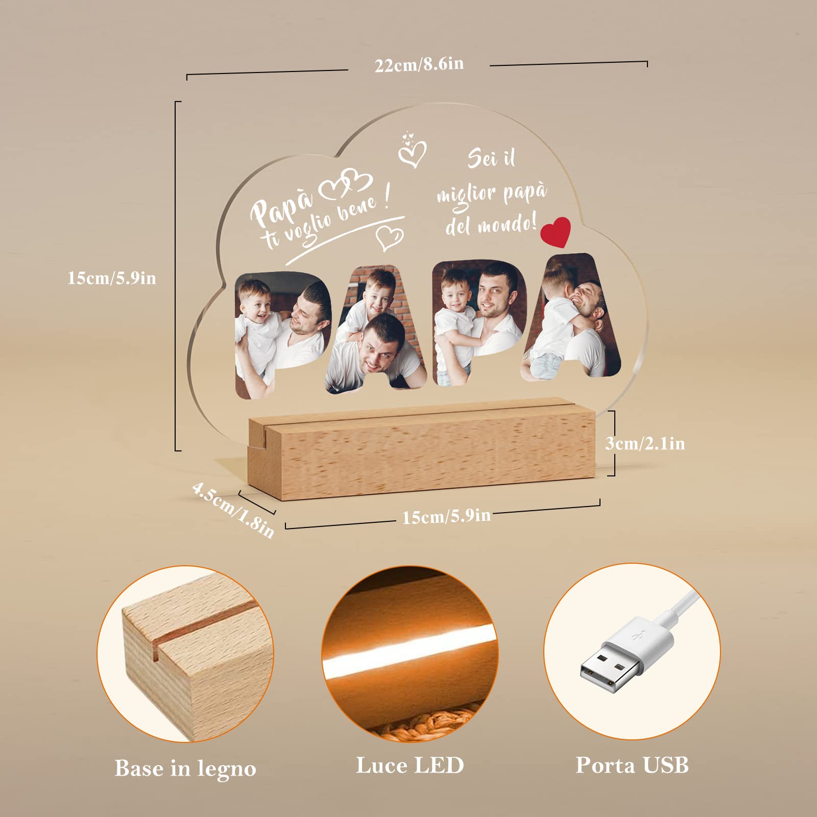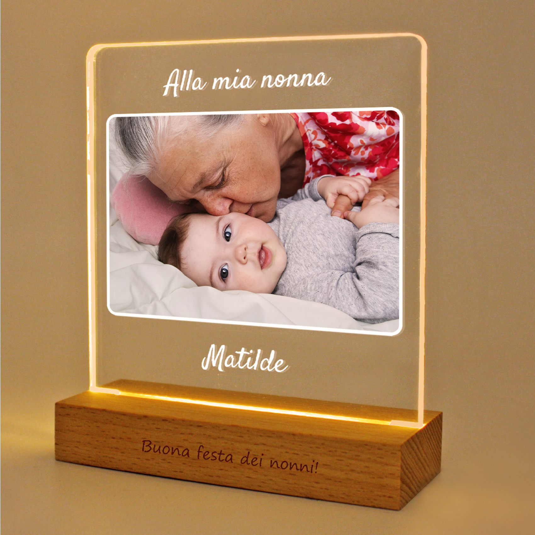 Lampada Led Personalizzata, Luce Notturna Decorativa, Lampada Notturna A Led, Base In Legno E Cavo Usb. IDEA REGALO, MAMMA, Papà, NONNA,NONNI, (A MIO FIGLIO