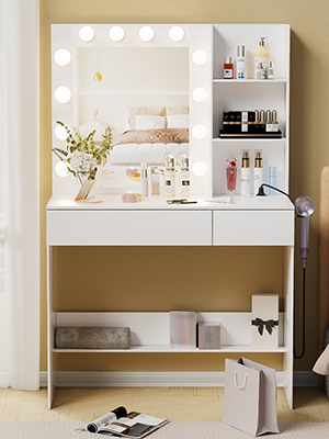 ● < Facile montaggio > -- Struttura aerodinamica con istruzioni di installazione dettagliate, è possibile completare il montaggio più velocemente. Trasforma il tuo trucco quotidiano in un piacere, un ottimo regalo per moglie, figlia e fidanzata nei giorni speciali. Materiali: toeletta - materiale in legno + vetro; sgabello - pelle artificiale + metallo · Colore: bianco · Dimensioni: tavolo 75 x 136 x 40 cm (L x A x P Lo sgabello imbottito incluso può essere riposto nella parte inferiore per un perfetto utilizzo dello spazio. ● Risparmio di spazio + stoccaggio > -- Spazio sul pavimento: 80 x 40 cm. Dimensioni sgabello: 40 x 24 x 40 cm (L x P). ● < Dati dimensionali dettagliati > -- Toletta: 40P x 80 W x 140 H cm. 12 lampadine LED garantiscono molta luce per diversi ambienti e make-up, e un pulsante per cambiare il colore della luce. Aspetto elegante con un comodo sgabello imbottito, combinato con praticità, piacevole alla vista. ● Stile semplice e classico > -- Superficie piatta e liscia con una leggera lucentezza alla luce del sole. Scrivania Trucco CLIPOP Tavolo Da Toeletta Con Lampadine A LED Hollywood, Con Specchio, Set Di 2 Cassetti, Per Armadio, Camera Da Letto : Amazon.it: Casa E Cucina Leroy Merlin