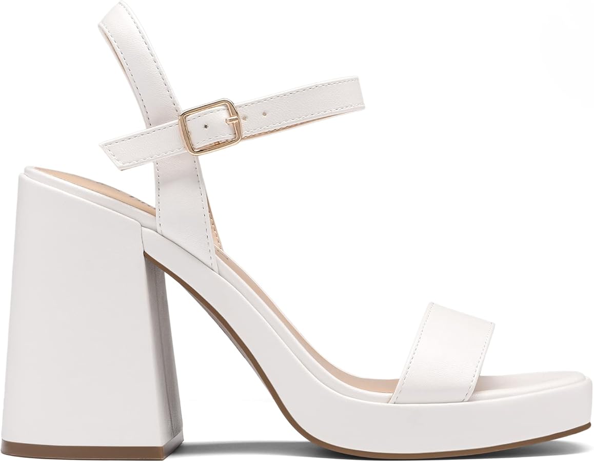DREAM PAIRS Donna Sandalo Tacco Elegante Da Alto E Largo Con Plateau Scarpe Classiche Con Tacco A Punta Quadrata Con Fibbie E Cinturini Estate,Size 38,Bianco : Amazon.it: Moda