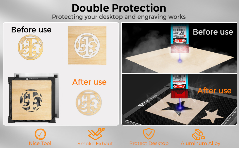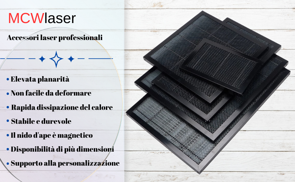 Scegliete il tavolo laser a nido d'ape della dimensione giusta per la vostra macchina. ②[Langlebige und schnelle Wärmeableitung]Hochwertiger Rahmen aus verzinktem Eisen und Aluminium Eisen für CO2-Laser-Wabentischkörper, wodurch sie stabiler, langlebiger und rostfreier wird Si prega di misurare e assicurarsi di acquistare la dimensione giusta. Parametri Varie dimensioni disponibili. Supporto alla personalizzazione. Dimensione complessiva Le dimensioni che elenchiamo per i letti a nido d'ape laser CO2 sono dimensioni complessive, compresi i bordi. ④【Ampia compatibilità】 Il tavolo a nido d'ape di MCWlaser è compatibile con un'ampia gamma di incisori e tagliatori laser, come incisori e tagliatori laser a ossigeno, a fibra e a CO2. A condizione che l'area di lavoro dell'incisore e della taglierina laser sia superiore a 600 x 400 x 22 mm. Possiamo anche realizzare tavoli laser a nido d'ape di dimensioni speciali, contattateci se ne avete bisogno. ③【Progettazione dell'osservazione pratica】Quando il laser taglia il legno o l'acrilico, il piano di lavoro laser a nido d'ape emette una luce brillante, indicando che il taglio è penetrato. In questo modo si risolve il problema che una normale macchina per incisioni ha difficoltà a giudicare se il taglio è avvenuto o meno. Suggerimento: Prima dell'acquisto, misurare sempre per verificare che l'area di lavoro della macchina sia maggiore o uguale alle dimensioni del letto a nido d'ape laser. Mcwlaser Laser Engraver MCWlaser Laser Honeycomb Tavolo 500 X 700mm Tavolo Da Lavoro Per Incisore Laser CO2 Macchina Per Incidere Di Taglio Spedito Dall'Europa Esente Da Dazio : Amazon.it: Fai Da Te Banco Da Lavoro Garage ①【Dimensioni eccessive】 600 x 400 mm, diametro del foro del tavolo 9,5 mm, spessore del tavolo 22 mm. Applicazioni Applicazioni principali varie macchine per l'incisione laser mature sul mercato, come la macchina per l'incisione laser fai da te a diodi, la macchina per l'incisione laser a ossigeno, la macchina per l'incisione laser a CO2 e la macchina per l'incisione laser a fibre.