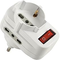 Electraline 55090 Adattatore Triplo 3 Prese Laterali, Spina Tedesca Multipresa 3 Posti Schuko Con Interruttore Onoff Bianco 59152397