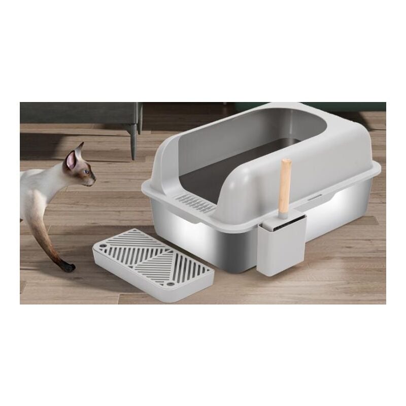 Lettiera Per Gatti In Acciaio Inox, Extra Large, Con Lati Alti Con Coperchio Per Gatti Grandi Anti Perdite Facile Da Pulire Antiaderente Cucchiaio E Pedale Inclusi Grigio