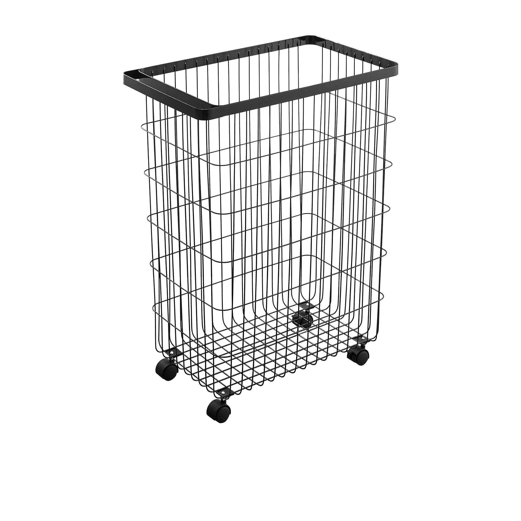 Yamazaki 4777 TOWER Laundry Basket With Wheels Black Steel