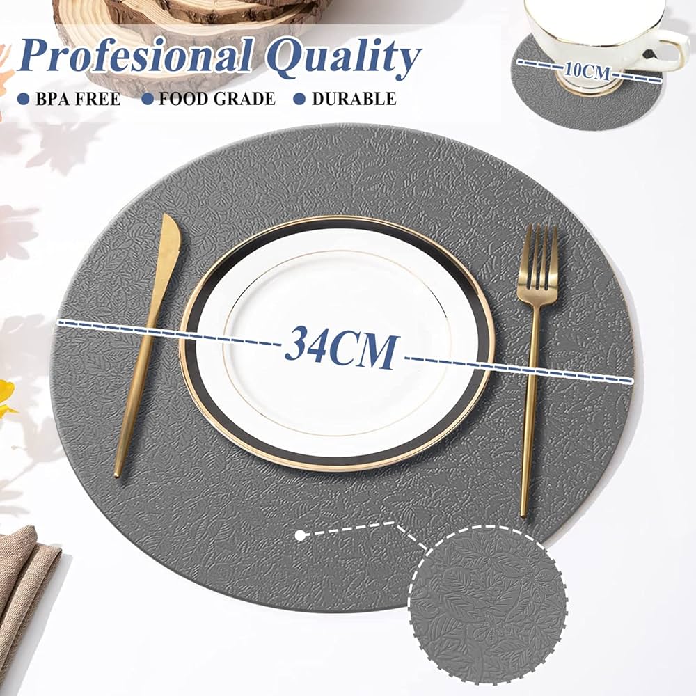 KERYCHIN Tovagliette In Silicone E Sottobicchiere Rotondo Lavabili, Resistenti Al Calore 220 °C, Antiscivolo E Impermeabili, Accessori Decorativi Per Ristoranti, Cucina, Hotel, 8 Pezzi, Grigio Scuro : Amazon.it: Casa E Cucina