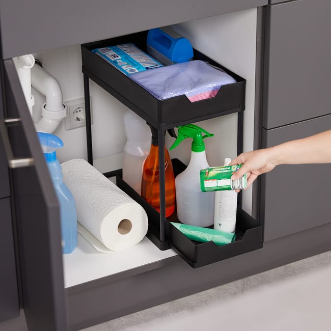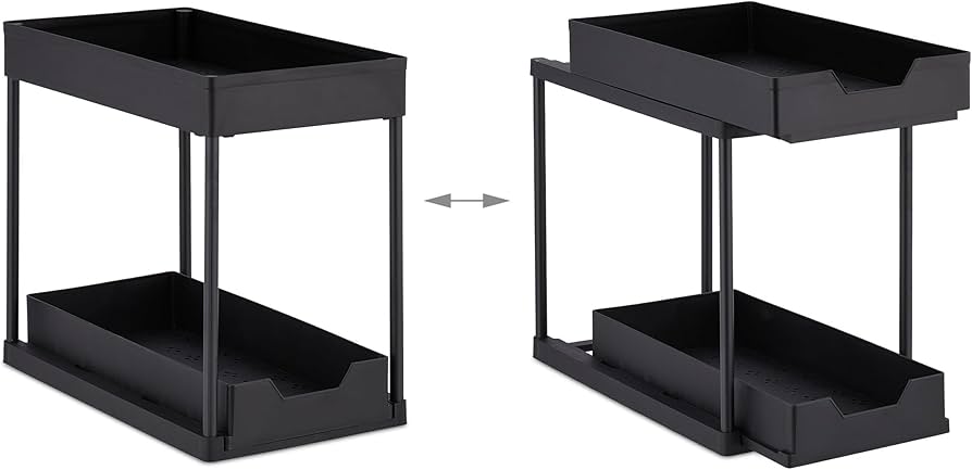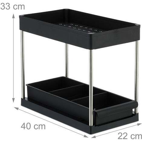 Relaxdays Mensole Sotto Lavabo Organizer Mobile Sottolavello, Set Da 2 Scaffali A 2 Ripiani, 4 Ganci, Prodotti Pulizia, HLP 32x40x22 Cm, Nero, Acciaio Inox : Amazon.it: Casa E Cucina