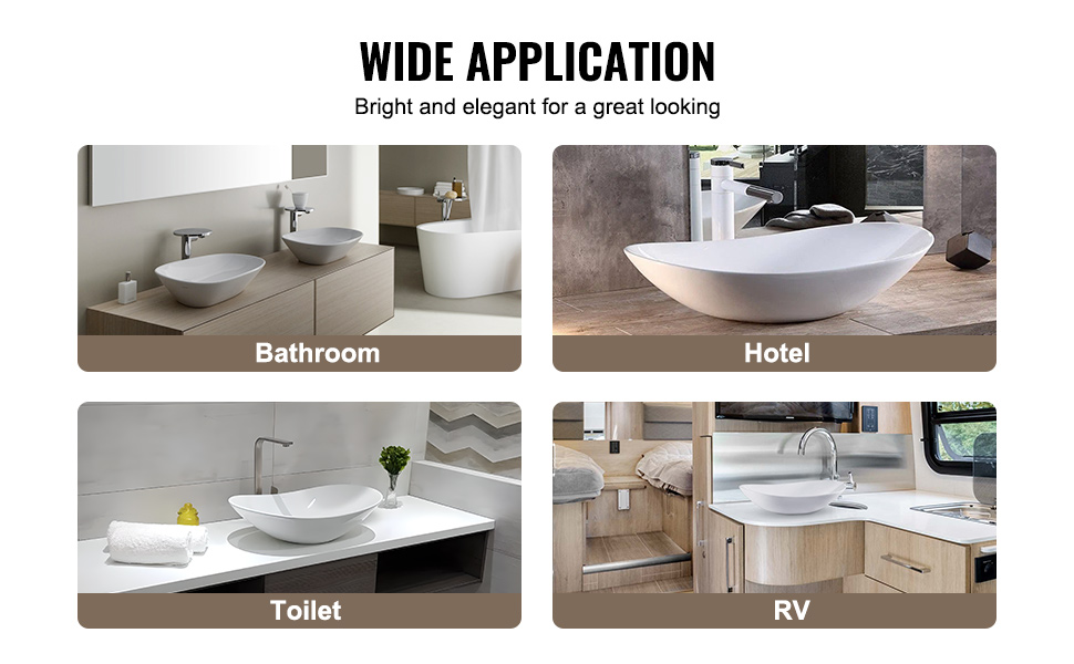 VEVOR Lavabo Ovale, 409x341 Mm, Lavabo Soprapiano In Ceramica Bianca, Stile Moderno, Luminoso Ed Elegante, Adatto Per Bagno, Hotel, Toilette, Roulotte | Leroy Merlin