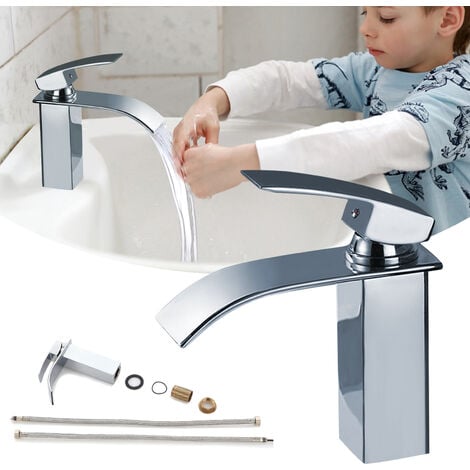 Rubinetto Moderno Per Lavabo, Rubinetto Per Bagno, Rubinetto A Rubinetto Per Bagno Rubinetto A Cascata Per Lavabo Miscelatore Per Lavandino Non Include Tubi Dell Acqua Argento 92859688