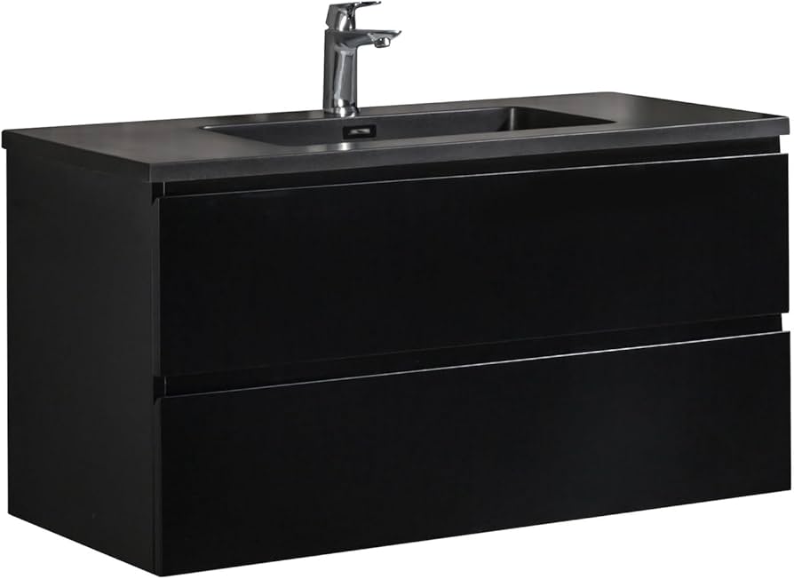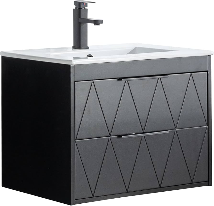 UEV Mobile Bagno Sospeso Con Lavabo In Ceramica, 60CM Lavandino Bagno Con 2 Cassetti, Lavandino Bagno Con Mobiletto Moderno, Soft-Close, Nero