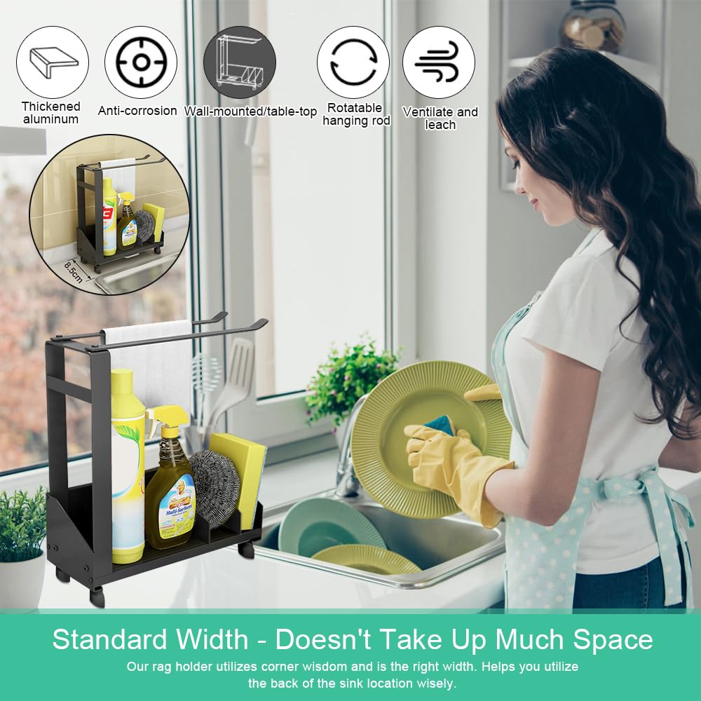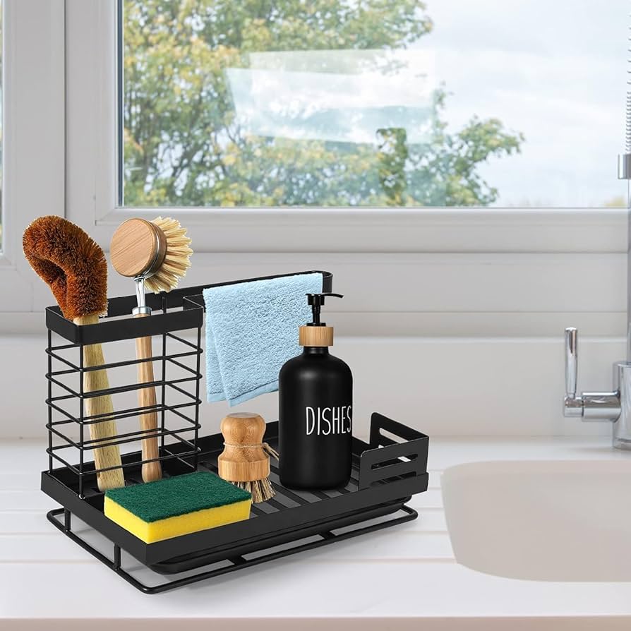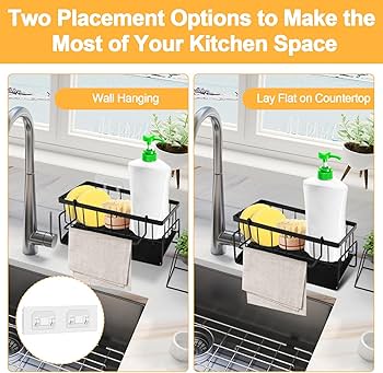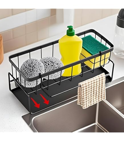 Organizzatore Per Lavello YAANBUNB Porta Spugne Lavello Cucina Con Padella Di Scarico,Organizer Per Lavello Da Appoggio,Multifunzionale In Metallo Per Stracci, Asciugamani, Spazzole, Sapone Organizer Per Lavello Cucina