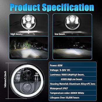 Il design dei fori di ventilazione sul retro del il corpo della lampada può rimuovere efficacemente la nebbia. Qualità Premium: il faro a LED da 5,75 pollici realizzato in alluminio pressofuso ha eccellenti prestazioni di dissipazione del calore e un'efficace impermeabilità, quindi questo faro per motocicletta a LED da 5,75 pollici ha una durata di oltre 50.000 ore. Fari Supplementari Moto Lechnical 5-3/4 '' 5,75 Pollici Faro LED Per Moto Con Fascio Hi/Lo Faretti Moto Supplementari La temperatura di colore della luce bianca 6000K, insieme alle luci diurne blu e agli indicatori di direzione ambra, è super luminosa e durevole, un'ottima sostituzione dei fari alogeni e HID originali. Viene fornito con un adattatore da H4 a H13. (Connettore: H4/H13). La temperatura di colore della luce bianca da 6000 K, insieme alle luci diurne blu e agli indicatori di direzione ambra, è super luminosa e durevole, un'ottima sostituzione dei fari alogeni e HID originali. Colore. Nero ; Descrizione. Caratteristiche: ALTO GRADO DI PROTEZIONE: Il guscio in lega di alluminio, la funzione antiurto e impermeabile è migliore Facile installazione: questo faro a LED con interfaccia H4, design plug and play. Di solito ci vogliono solo circa 20 minuti per installare le luci. Design unico: il faro della motocicletta è caratterizzato da un caratteristico design a matrice sfumata con indicatori di direzione dinamici DRL, che offrono cinque funzioni: indicatore di direzione sinistro, indicatore di direzione destro, luce di marcia, abbaglianti e anabbaglianti per una maggiore visibilità e sicurezza di guida.