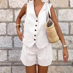 Gilet Estivo Da Donna, Leggero, In Lino, Estivo, Leggero, Corto, Con Scollo A V, Con Bottoni, Senza Maniche, Per Le Mezze Stagioni, Taglio Aderente, Per Il Tempo Libero, Elegante, Ag., XS : Amazon.it: Moda