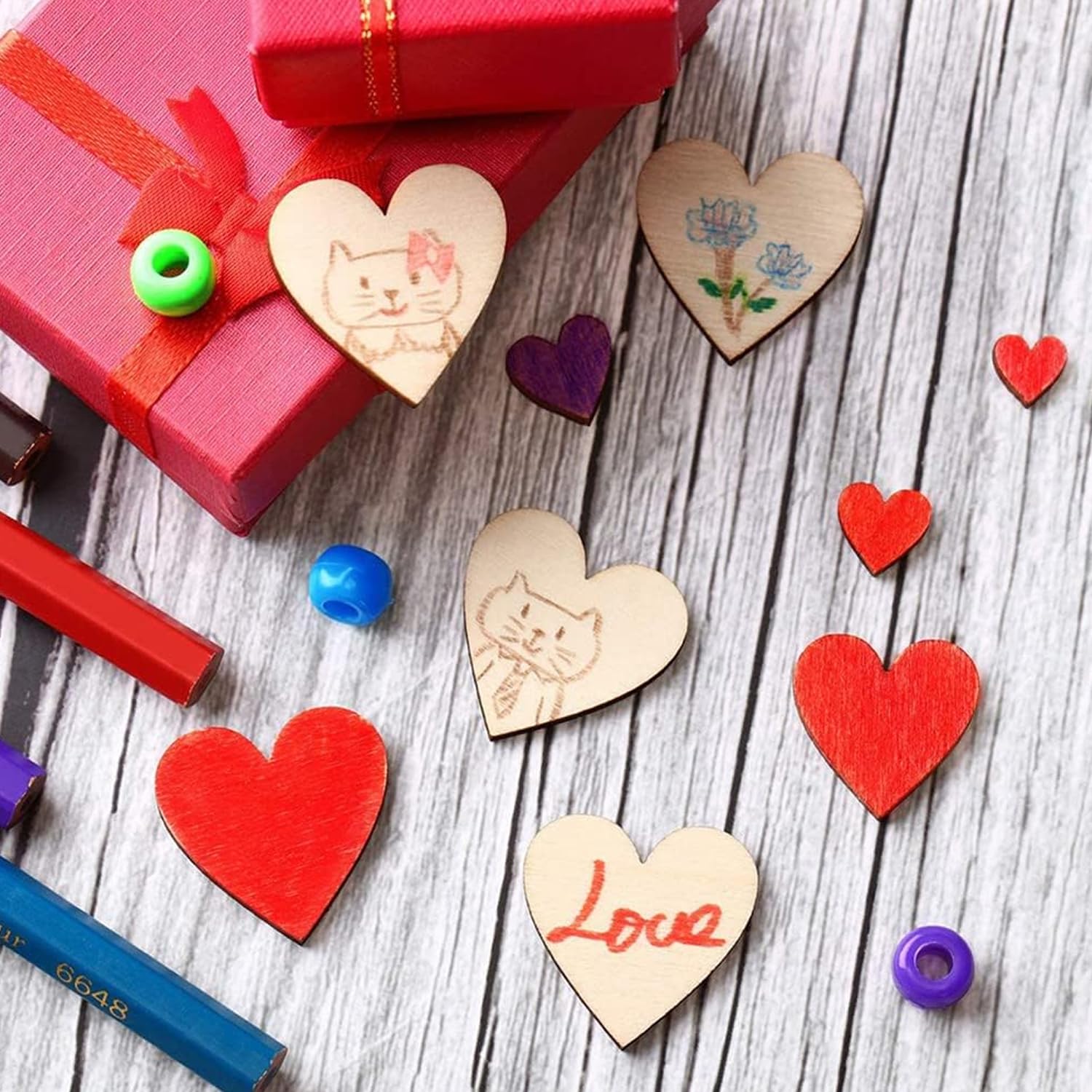 Usali come centrotavola per matrimoni o eventi per creare un'atmosfera accogliente per i tuoi ospiti. Colore: legno originale Dimensioni del Cuori in legno Massi: 1,2 x 1,2 x 0,3 cm Cuore in legno traforato: 1,9 x 1,9 x 0,3 cm. 2 stili]: riceverete 300 cuori in legno in due stili, sia massiccio che cavo, in quantità sufficiente per soddisfare perfettamente le vostre esigenze Cuoricini Legno 300 Pezzi Cuori Legno Coriandoli, Cuori Legno Matrimonio Piccoli, Decorazioni In Legno A Forma Di Cuore, Cuore Legno Decorativi Per Matrimonio, San Valentino, Artigianato Fai Da Te Legno Fai Da Te Divertimento fai da te: puoi colorare, scrivere, intagliare, colorare, cospargere di glitter per creare decorazioni molto belle secondo il tuo modo creativo, oppure puoi metterli insieme. Occasioni applicabili: decorazione da tavolo per matrimoni, cuori in legno possono essere utilizzati per realizzare biglietti, ciondoli, scrapbooking, cornici per foto, regali, decorazioni per la casa e fai da te. Avviso di sicurezza Decorazione da tavolo matrimonio cuori in legno Scatena la tua immaginazione e crea piccoli cuori in legno creativi. Descrizione prodotto Caratteristiche: 1. Le decorazioni a forma di cuore in legno hanno due stili, uno è di forma solida e l'altro è a forma cava, perfetto per matrimoni, San Valentino. 2. I piccoli cuori di legno sono realizzati in legno di alta qualità con venature del legno naturale, aspetto squisito, superficie liscia senza sbavature, robusto e durevole. 3. I cuori in legno sono di colore naturale, puoi colorarli, colorare, scrivere e intagliare, a seconda del tuo modo creativo. 4. I cuori in legno per il fai da te possono essere utilizzati per realizzare biglietti, etichette, scrapbooking, cornici per foto, regali, decorazioni per la casa e fai da te. Specifiche: Materiale: legno.