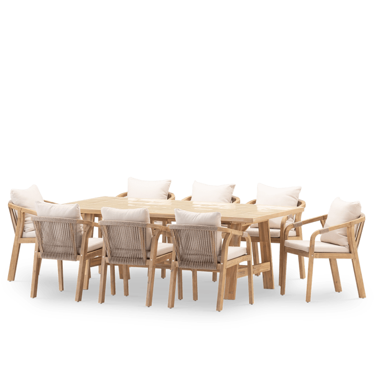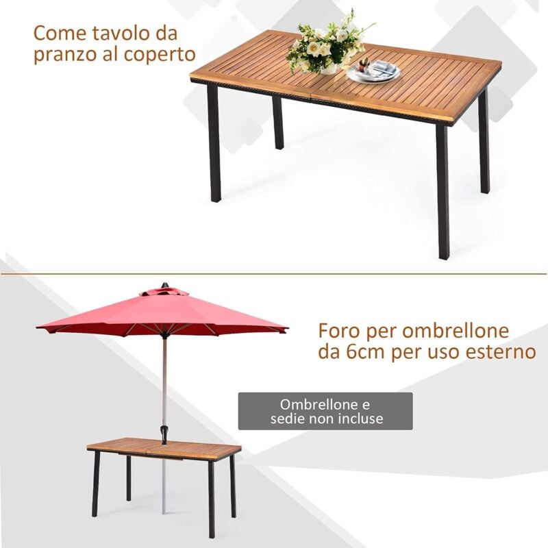 Tavolo Da Pranzo Per 8 Persone In Legno Di Acacia, Tavolo Da Patio Con Robusta Struttura In Metallo Per Giardino Naturale