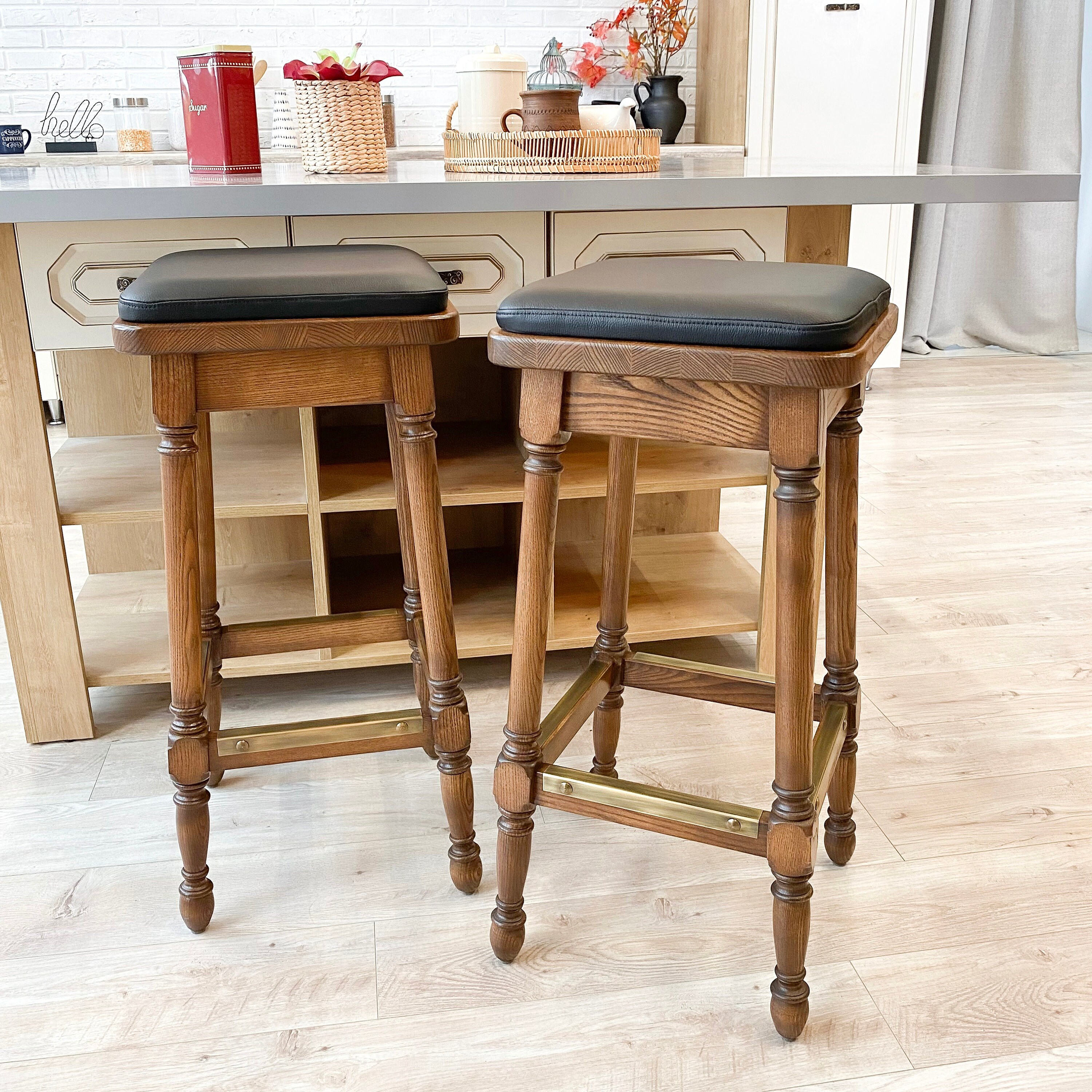 Sgabello Da Bar In Legno Massiccio Con Sedile Da Cucina Da