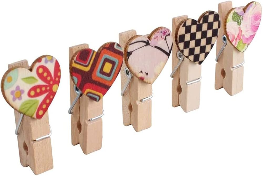 50 Mini Mollette In Legno Viola A Forma Di Cuore, Multicolore, Piccole Mollette Con Cuore, Clip Per Foto Da 3 Cm, Piccole Mollette Con Cordino Per Esporre Foto, Artigianato Fai Da Te