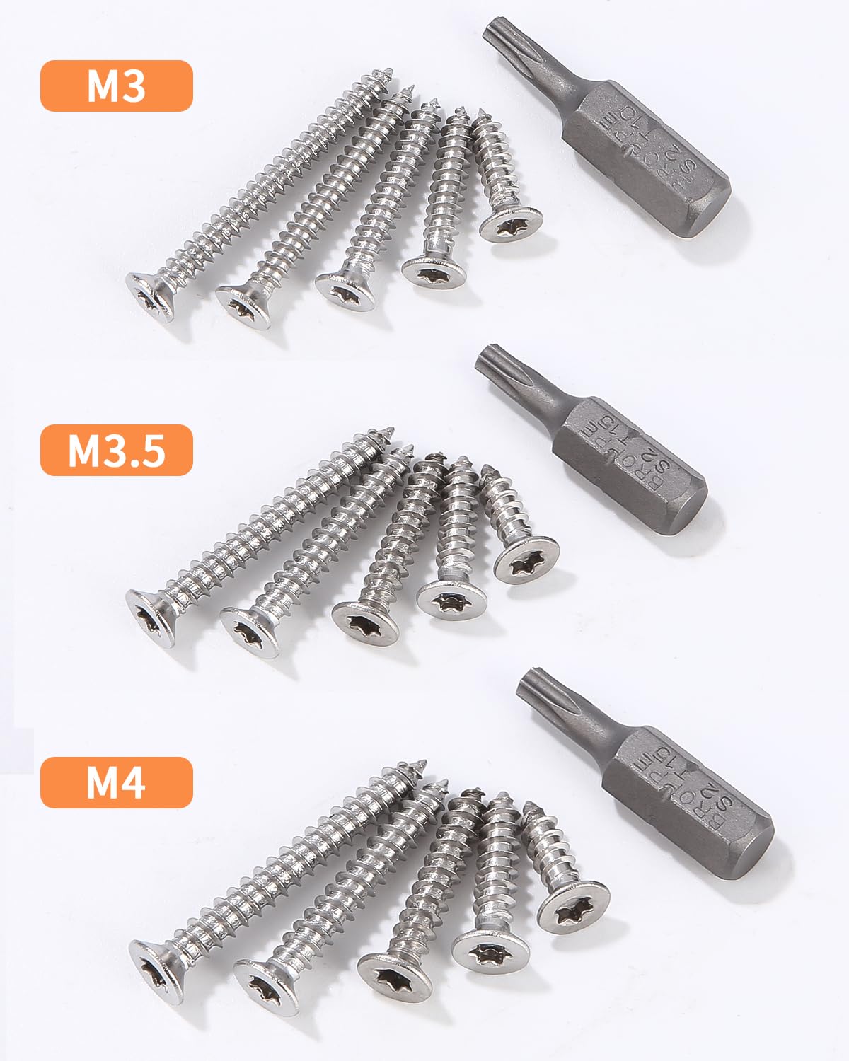 Le viti autofilettanti per metallo in lamiera sono affilate, pulite e precise. Riceverai 400 pezzi viti per legno M3, M3.5 e M4, insieme a 3 trapani sufficienti per le tue esigenze quotidiane. Facile da riporre: 400 viti per legno in acciaio inossidabile 304 con una robusta custodia in plastica trasparente per riporla per un rapido accesso e protezione Viti Autofilettanti Per Legno 400 Pezzi Viti Per Legno,,Viti Torx Per Viti Autofilettanti Per Metallo La filettatura a viti autofilettanti per metallo compatta e potente non si deforma facilmente durante l'uso e non scivola. Le viti per legno sono utilizzate nelle attrezzature domestiche e di ufficio, mobili in legno, macchine per la riparazione e l'invenzione, i componenti di fissaggio, i punti di forza industriali e delle costruzioni, ecc. La punta affilata delle viti per legno aiuta a penetrare nel materiale senza sforzo. Questo li rende estremamente durevoli. MumdoYAL 400 Pezzi viti per legno,viti autofilettanti per metallo,viti torx per legno,viti acciaio inox,M3/M3.5/M4,, Con 3 pezzi pezzi