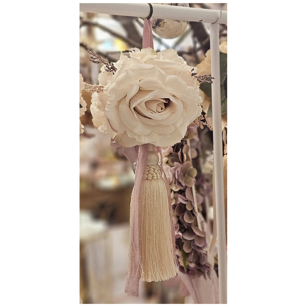 Fiori Di Lena - Nappa Gioiello Con Rosa, Ortensia E Nebbiolina Sabbia H.32 - Dimensione Casa Store