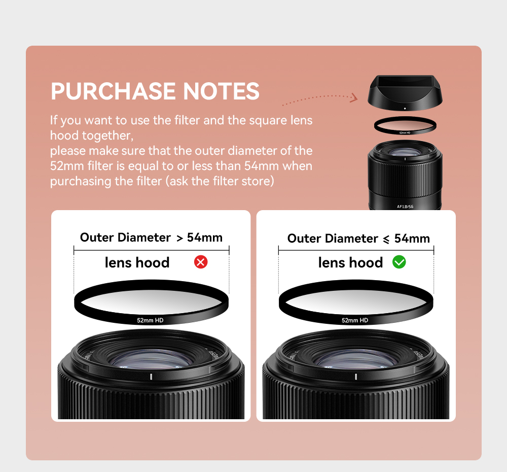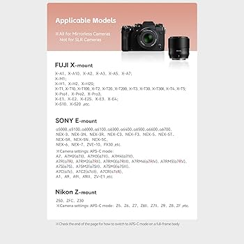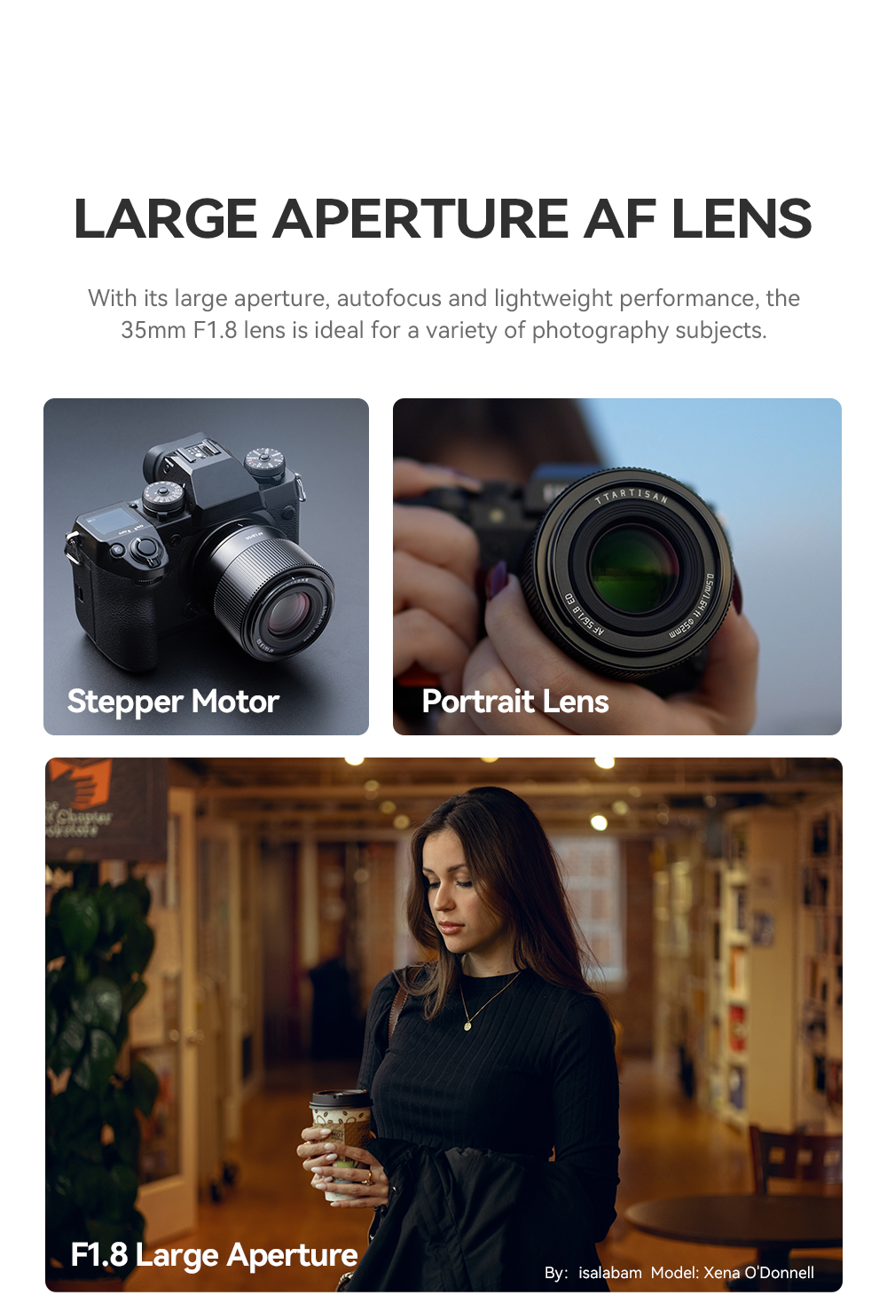 Rilevamento degli occhi Il rilevamento preciso e agile degli occhi facilita la cattura di momenti meravigliosi quando si scattano foto e aiuta a riprendere immagini fluide quando si registrano video. per Fuji X-Montaggio: X-A1、X-A10、、X-A2、X-A3、X-A5、X-A7、X-M1、X-H1、X-H2、X-H2S、X-T1、X-T10、X-T2、X-T20、X-T30、X-T3、X-T4、X-T5、X-T100、X-T200、X-T30、X-T30 II、X-PR01、X-PR02、X-PR03、X-E1、X-E2、X-E2S、X-E3、X-E4、XS10、XS20 TTARTISAN 56mm F1.8 Messa a fuoco automatica APS-C Obiettivo Della Macchina Fotografica per montaggio Fuji X Metallo Leggero Obiettivo Della Macchina Fotografica Supporto monitoraggio occhi Peso leggero e aggiornamento di tipo C: solo circa 233 ~ 245 g, rendendolo facile da trasportare. Modelli compatibili per ogni marca di telecamere Caratteristiche Motore passo-passo, veloce e silenzioso L'obiettivo TTArtisan 56/1,8 adotta una struttura di tipo STM+vite di piombo, che fornisce una messa a fuoco automatica silenziosa e veloce per aiutare a catturare i momenti più importanti. Lista di imballaggio 1* Obiettivo della fotocamera 1* tappo anteriore 1* tappo posteriore 1* paraluce Cattura immagini nitide: l'obiettivo è dotato di 10 elementi di lente in 8 gruppi, tra cui 1 elemento di dispersione ultra bassa e 2 occhiali ad alto indice che riducono la dispersione e l'aberrazione cromatica e migliorano significativamente la qualità dell'immagine. Messa a fuoco automatica: un motore passo-passo STM+vite di piombo fornisce un autofocus silenzioso e veloce, supporta il rilevamento degli occhi. Grande apertura F1.8: l'apertura F1.8 consente a più luce di entrare nella fotocamera, il che è vantaggioso per la fotografia in condizioni di scarsa illuminazione e portare un bel bokeh. Inoltre, l'ampia apertura mette a fuoco gli oggetti in primo piano e sfoca lo sfondo. Inoltre, può mettere in risalto il soggetto e creare un effetto di sfocatura omogeneo sullo sfondo. Sony Apsc TTartisan 56mm F1.8 APS-C Lente De Foco Automático De Grande Abertura Para C%c3%a2meras Sem Espelho Nikon Z50 Sony E Mount Zv I.1183255208 Fotocamera 56mm F1.8 per SONY E-Montaggio: A5000、A5100、A6000、A6100、A6300、A6400、A6500、A6600、NEX-3、NEX-3N、NEX-3R、NEX-5T、NEX-5R、NEX-5、NEX-5N、NEX-7、NEX5C、ZVE-10、FX30./ Impostazioni della fotocamera: Modalità APS-C:A7、A7ll(A7M2)、A7lll(A7M3)、A7lV(A7M4)、A7R、A7Rll(A7RM2) 、A7Rlll(A7RM3) 、A7RlV(A7RM4)、A7RV(A7RM5)、A7S、A7SII(A7SM2) 、A7SIII(A7SM3)、A7C、A9、A9II、A1、ZV-E1、A7C2、A7CR. Suggerimenti: se si desidera utilizzare il filtro e il paraluce quadrato insieme, assicurarsi che il diametro esterno del filtro da 52 mm sia uguale o inferiore a 54 mm. Lunghezza focale ideale per i ritratti 56 mm su APS-C equivale a 84 mm su una fotocamera a pieno formato, il che è ottimo per la fotografia di ritratto. TTARTISAN 56mm F1.8 Auto Focus APS-C ObiettivoTelaio APS-C Motore passo-passo Grande apertura F1.8 Può evidenziare il soggetto e creare un effetto sfocato uniforme sullo sfondo. 1* Manuale Utente / 1* Scheda utente Viene fornito con un paraluce