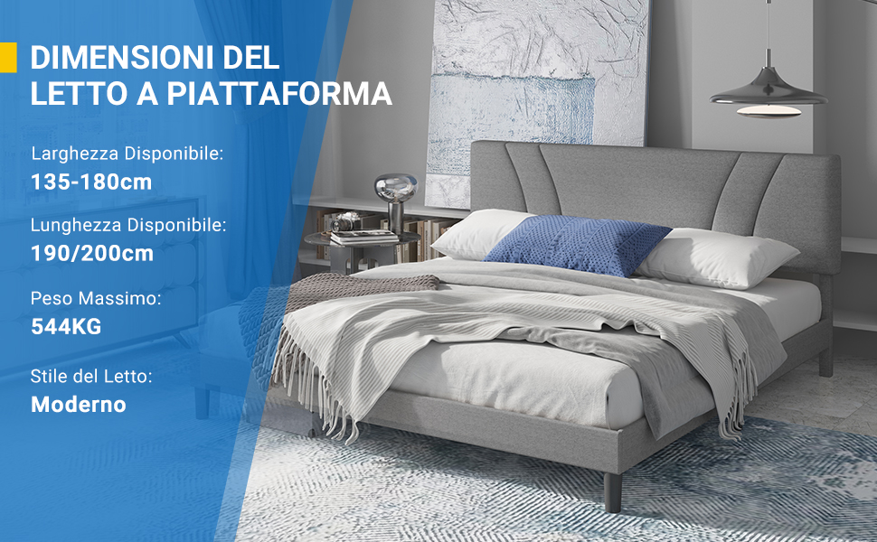 Taglia. 150x200cm ; Materiale. Legno ; Dimensioni del prodotto. 2,04L x 1,53l x 1,06H metri ; Stile. Modern ; Colore. Grigio Si consiglia di utilizzare un materasso spesso 25-35 cm per colmare lo spazio lasciato dalla testiera. FACILE da MONTARE - Tutte le parti e le istruzioni necessarie sono incluse in una scatola per la tua comodità. DESIGN MODERNO - Il design semplice ed elegante della struttura del letto a piattaforma full size ti dà un tocco di raffinatezza e comfort. NON NECESSITA di BOX SPRING - Progettata con un robusto supporto in doghe di legno. Testiera Letto Letto A Piattaforma Imbottito Con Testiera Bottoni Doghe In Legno Struttura Letto Moderno Grigio Doghe Letto Matrimoniale Non hai bisogno di alcuna esperienza precedente o di attrezzi speciali per montarlo e, con l'aiuto di DUE PERSONE, ci vogliono solo 20 minuti per completarlo.