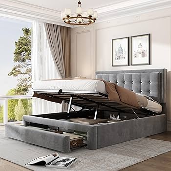 Letto Matrimoniale, 140 X 200 Cm, Con Cassetto, Tessuto In Velluto