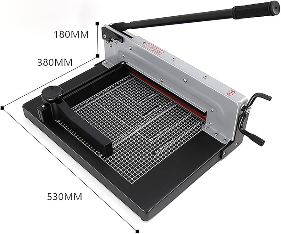 cutter taglierina metallica domestico professionale ufficio lama cutters colore Taglio efficiente: il dispositivo di stampa della taglierina impedisce efficacemente lo scivolamento della carta da taglio, soprattutto per materiali in PVC o biglietti da visita con effetti accattivanti. Alta qualità : la taglierina manuale adotta principalmente una struttura metallica, robusta e durevole. Taglio preciso della carta: larghezza di taglio: 30 cm/12 pollici, spessore carta di taglio: 0,5-4 cm (300 fogli da 20 lbs), spessore lama: 45HRC, Dimensioni del prodotto: 25 X 14,3 X 16 pollici / 63,5 X 36,3 X 40,6 cm. Manico extra lungo: il manico più lungo è più ergonomico di una normale maniglia. Taglierina Per Carta Taglierina A Leva Per Fogli A4 A5 B5 B6 B7 Taglia Carta Con Barra Centimetrata Vevor Tagliacarte La lama utilizza un coltello affilato e ispessito in acciaio con velocità di taglio rapida e alta efficienza.