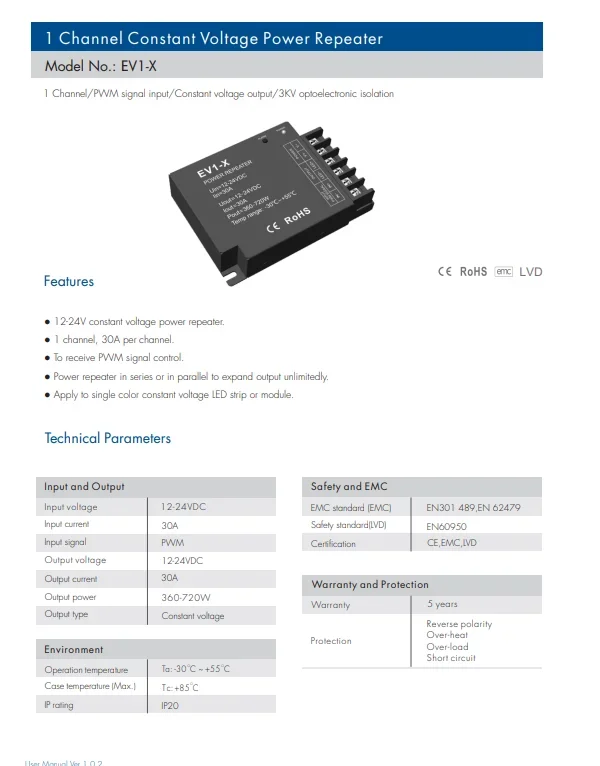 MiBoxer Mi-Light - Amplificatore 5CH 12/24V 15A PA5 Amplificatore di potenza ad alta velocità (20ns), facile da installare e privo di manutenzione e gestione. Il segnale di regolazione viene esteso in modo lineare e senza ritardi. Ripetitore di segnale PWM a 1 canale per strisce LED e apparecchi monocolore da 5-24VDC e max. 16A. Amplificatore di potenza ad alta velocità (20ns), facile da installare e privo di manutenzione e gestione Estendete la lunghezza delle vostre installazioni LED dimmerabili con amplificatori di segnale con un unico controller dimmer.