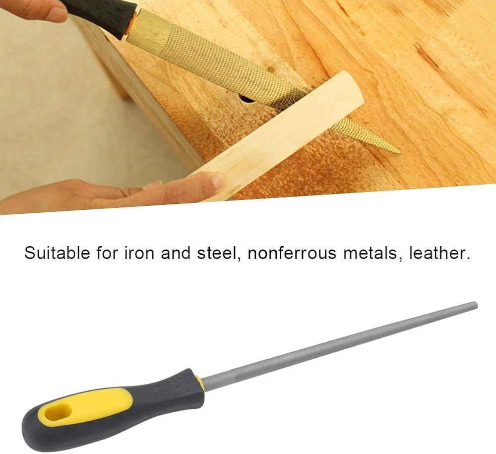 Fdit Lima tonda da 10 pollici con impugnatura ergonomica Utensili in metallo per utensili grossolani Utensili per lime in acciaio al carbonio ad alta resistenza per la lavorazione del legno(2 Impugnatura ergonomica in TPR PP, comoda da impugnare, non ferire la mano, nessuna fatica e più efficiente da usare. La lima in acciaio è realizzata in acciaio al carbonio T12 di alta qualità, incisivo e resistente con elevata durezza e lunga durata. Lime Per Legno Lima Piatta Grande Da 8 Pollici, Strumento Per Affilare Gli Utensili Per File Manuali Lama Per Affilare I File In Acciaio Con Manico Per Affilare I Coltelli, Ascia, Ascia In Metallo(a Denti Lima Per Legno Lo speciale design della forma del dente, uniforme e liscio, migliora efficacemente la capacità di taglio. Una buona scelta per garage, fabbriche, ingegneria, officina.