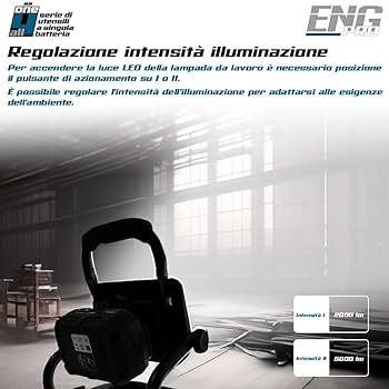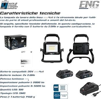 ENG PRO Faro Lampada 100 LED Luce Da Lavoro Faretto | Linea Professionale A Batteria ONE4ALL |50 W Luminosità Regolabile Fino A 5000 Lm | Solo Corpo