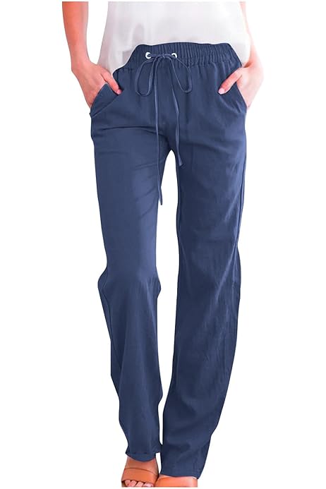 ORANDESIGNE Donna Pantaloni Cotone Estivi Pantaloni Lino A Vita Bassa Con Coulisse Pantaloni Spiaggia Morbidi Confortevoli Pantaloni Casual Larghi Colore Solido 9 10 Lunghezza D Cachi Xl 114738123