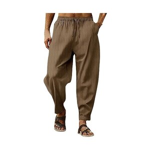 7/8 In Lino, Pantaloni Estivi Da Uomo, Leggeri, A Gamba Larga, Per Il Tempo Libero, Vestibilità Rilassata, Tinta Unita, Con Coulisse, Pantaloni Harem, Pantaloni Da Jogging, Pantaloni Da Spiaggia