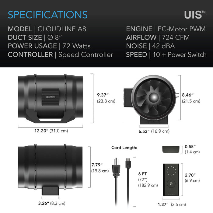 AC Infinity Air Filtration Kit | Cloudline Lite Inline Fan, Carbon Fil - LED Grow Lights Depot