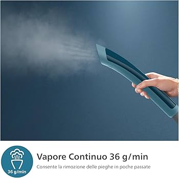 The Philips Garment Steamer 1000 Series is your everyday companion for easy de-wrinkling. Thanks to multiple steam settings and the large water tank, you can conveniently steam all kinds of fabrics quickly and effectively without interruptions 99,9% DI RIMOZIONE DEI BATTERI*: Il vapore caldo prolungato elimina fino al 99,9% dei batteri e degli acari della polvere* e rimuove gli odori per mantenere freschi i capi ACCESSORI INTELLIGENTI: Un'esperienza completa grazie all' appendiabiti integrato nella parte superiore della stiratrice, un guanto per una maggiore protezione e una spazzola per tessuti adatta a una maggiore diffusione del vapore Stiratore Verticale Philips Garment Steamer 1000 Series, 1800 W, Large 1.8 Litre Water Tank, 3 Steam Levels, Integrated StyleBoard, Easy Unwrinkle, Kills 99.9% Of All Stiro Verticale STYLEBOARD INTEGRATO: lo StyleBoard integrato funge da supporto e rende più confortevole la stiratura DIVERSE IMPOSTAZIONI PER TUTTI I TESSUTI: La stiratrice verticale dispone di 3 impostazioni di vapore con una potenza massima di 36 g/min di vapore continuo per eliminare rapidamente qualsiasi tipo di piega