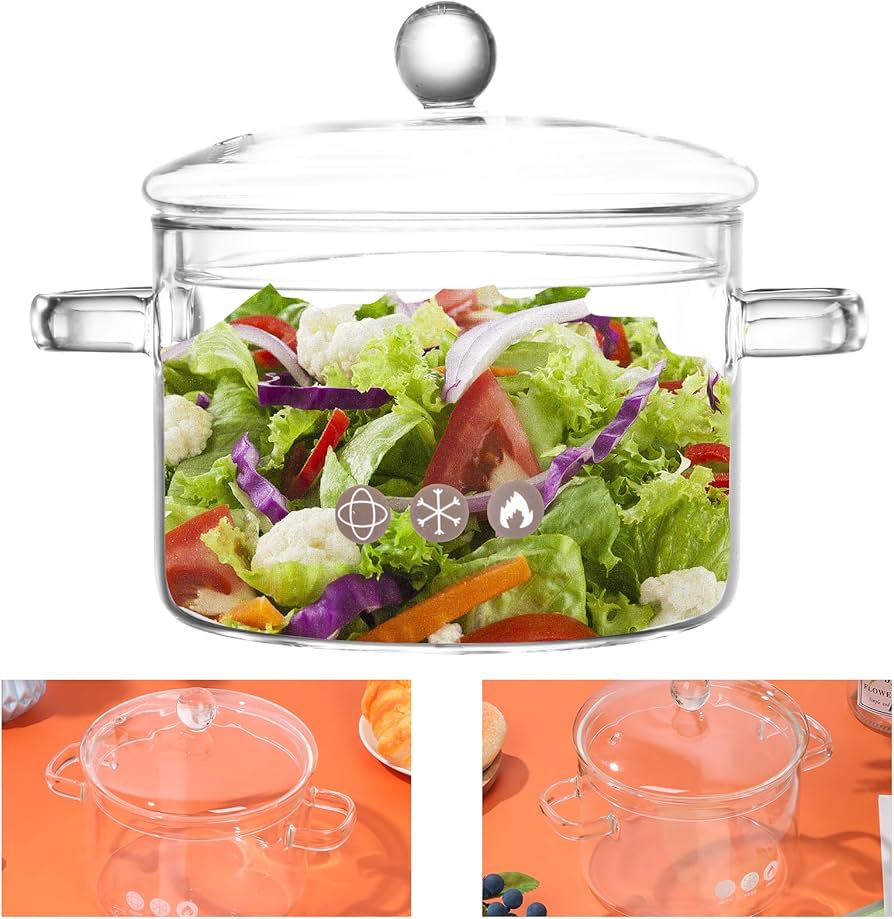 Pentola In Vetro Con Coperchio, Pentola In Vetro Resistente Al Calore Da 1,5 Litri, Set Di Pentole In Vetro Set Di Pentole Di Vetro Piano Cottura Sicuro Per Pasta Noodle, Zuppa, Latte,Clear