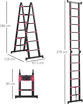 Cambiare una lampadina o riparare la staccionata sarà ancora più facile grazie alla scala telescopica DURHAND Scala Telescopica Alluminio Lospitch Scala Telescopica In Alluminio, Pieghevole, 3.8 (1,9 + 1,9) M Scala Estensibile Con Scala Alluminio 8 Gradini