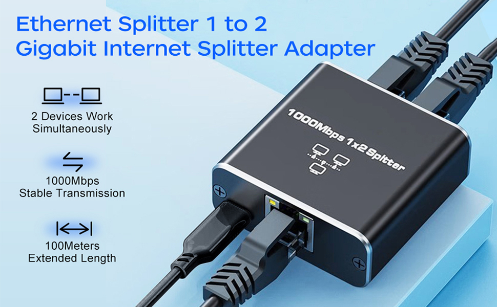 Loydia Ethernet Splitter 1 To 2, Gigabit Ethernet Network Switch, 1000Mbps RJ45 Internet