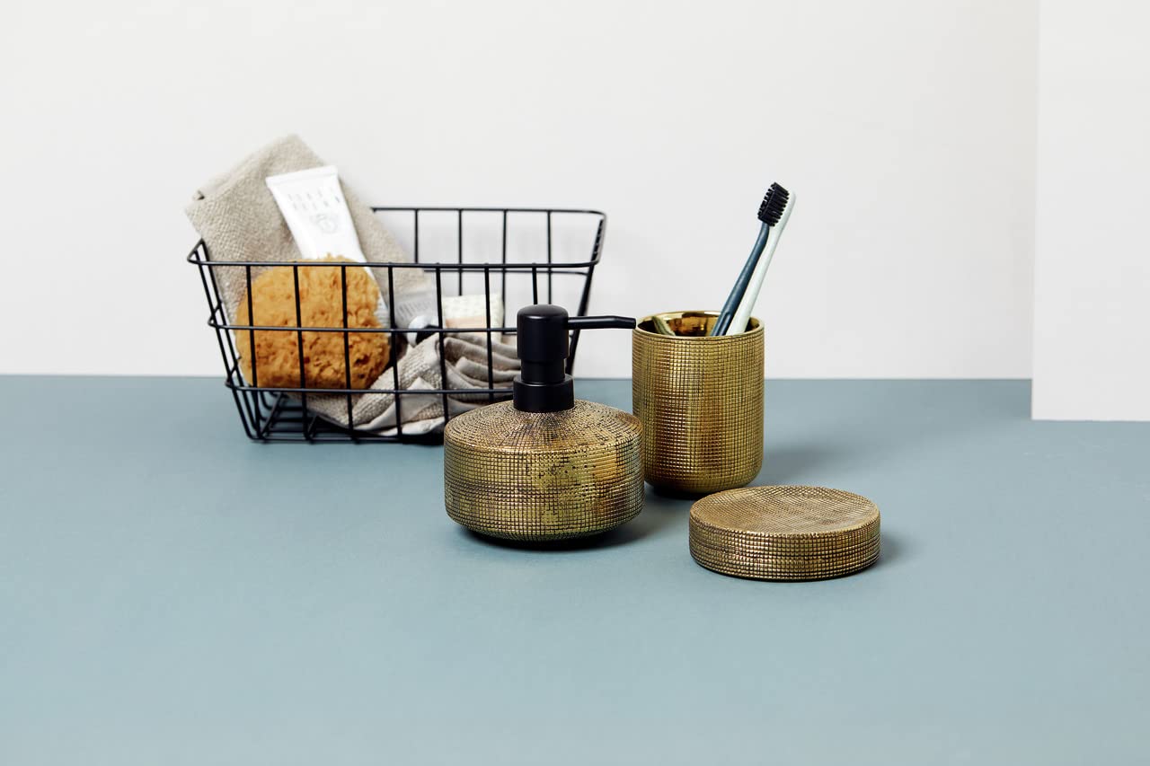 Dispenser Doccia WENKO Dispenser Sapone Rivara, Dosatore Di Sapone Riempibile Per Sapone Liquido E Lozione, In Pregiata Ceramica, Dipinto A Mano, 10.5 X 12 Cm, Capienza 400 Ml, Colore Oro Dispenser Sapone Bagno