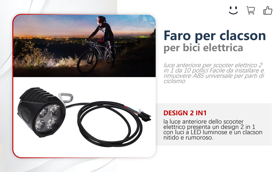 Luce Anteriore E Clacson, Luce Anteriore Bici Elettrica, 2 In 1 Clacson LED Head Light Lampada Frontale Luminosa 12V-80V Per Ciclomotore Bici Elettrica 5,4 X 5,2 Cm : Amazon.it: Sport E Tempo Libero