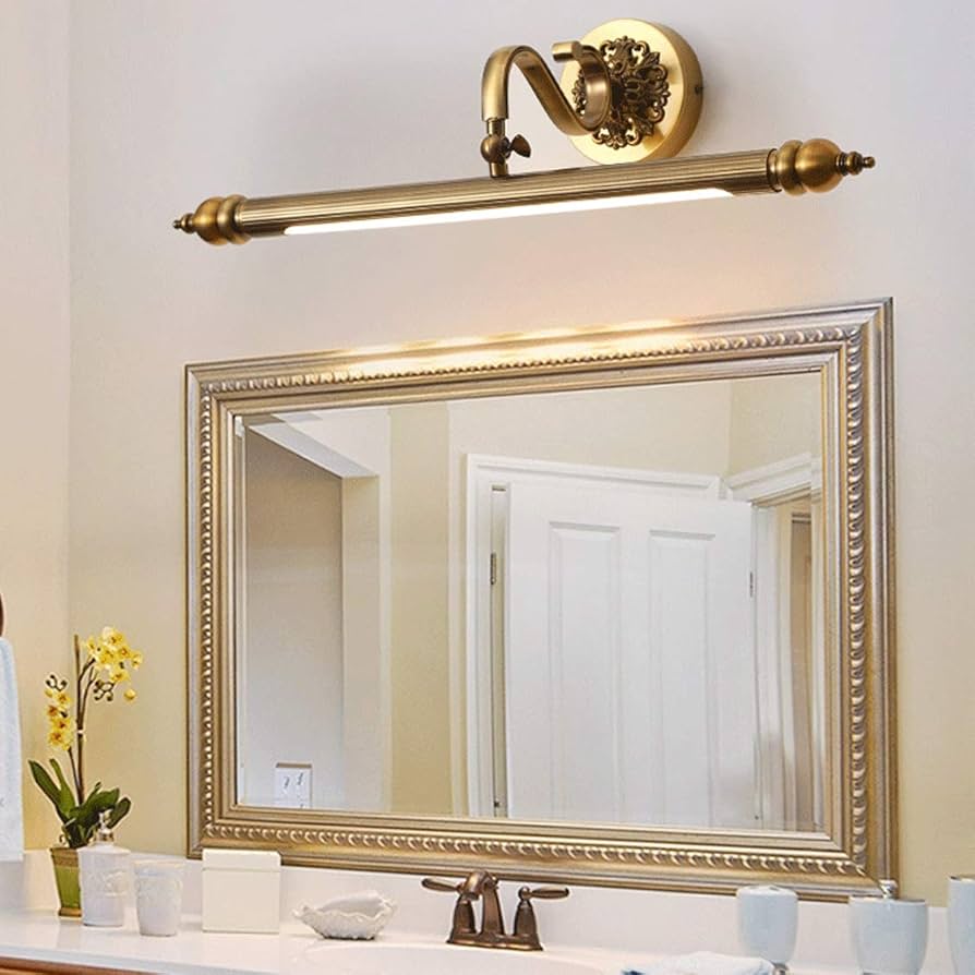 Il robusto corpo della lampada in ottone è robusto e durevole ed è anticorrosione e antiruggine. Il paralume in acrilico rende la luce più uniforme e morbida. [Ampia applicazione Lampada Per Specchio Bagno Luci Da Specchio Da Bagno, Luce Frontale A Specchio A LED Vintage In Ottone Con Testa Luce Per Specchio Bagno Girevole