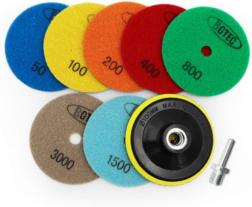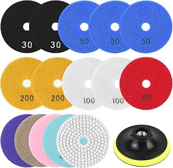 Pasta Abrasiva Per Carrozzeria Per BGTEC Tamponi Di Lucidatura A Umido Diamantati Da Disco Diamantato 115 Spessore: 3 mm (spessore di lavoro) Hole: 14mm Applicazione: per granito, lucidatura di marmo Caratteristica: 1.Flessibile, adatto per lucidature di forme diverse 2. Qualità professionale, alta efficienza e lunga durata BGTEC Set di Tamponi Diamantati per Lucidatura a Umido da 100 mm, kit di Tamponi da 6 pezzi #1500 per Piastrelle in Pietra di Marmo di Granito e Ricerca Offerte Il kit/pacchetto di lucidatura per granito include: 6 pezzi/set, 6 pezzi di tamponi diamantati #100 Affilato, resistente all'usura e ad alta efficienza Kit di lucidatura per lucidatrice a umido, smerigliatrice per pavimenti o lucidatrice e tamponi per lucidatura in pietra, RPM ottimale 2200 Max RPM 4500. Non utilizzare mai con smerigliatrice ad alta velocità Codice colore per grana, facile da identificare e fornisce una diversa lucidatura professionale. Cuscinetti: diametro 4 pollici (100 mm) a spirale tipo turbo.