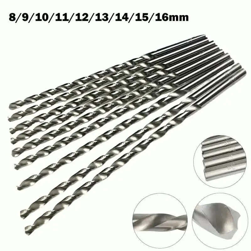 1 Pz 300mm Punta Da Trapano Extra Lunga HSS Acciaio Ad Alta Velocà 7/8/9/10/11/12/13/14/15/16mm Trapano A Doppia Scanalatura Gambo Tondo Per Acciaio Legno