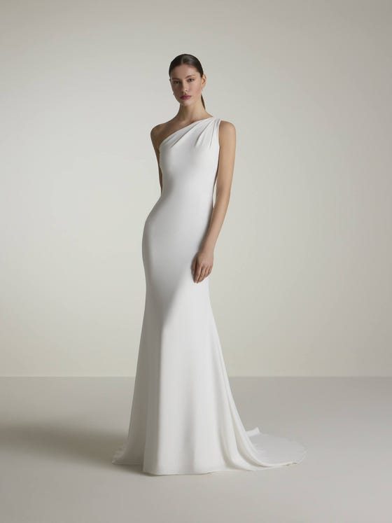 Abito Da Sposa Sirena Maniche Lunghe Gonna Lunga Queen Anne Bendaggio