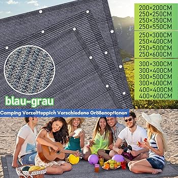 Ansobea Tappeto Da Campeggio, 2 X 2 M, Per Esterni, Con 12 Fori, 13 Picchetti E Borsa Per Il Trasporto, In HDPE, Traspirante, Da Campeggio, Antiscivolo, Colore: Grigio E Blu : Amazon.it