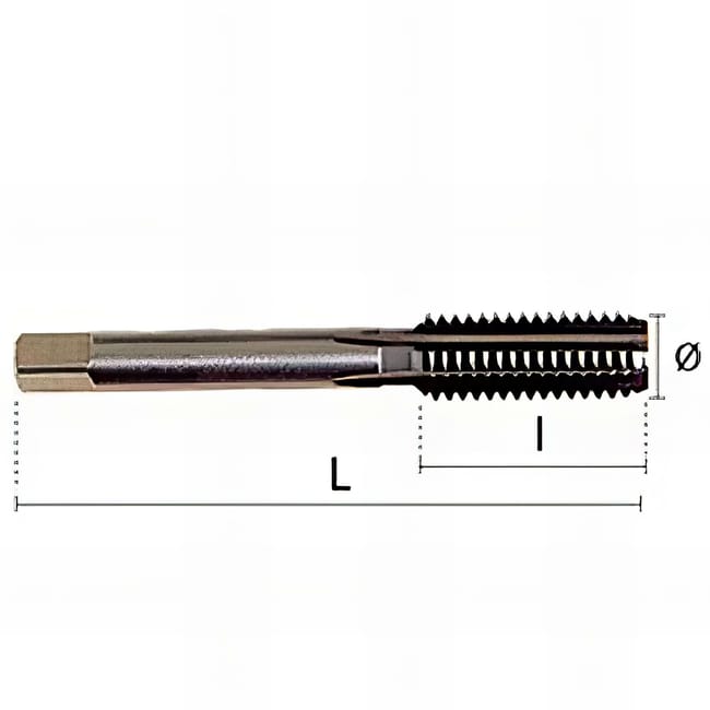 Materiale: HSS di alta qualità (acciaio ad alte prestazioni). Tolleranza DIN 352 ISO2/6h – per fori passanti e ciechi Qualità: prima classe 1A. Abbiamo circa 5.000 filiere, maschi, trapani e altri utensili da taglio e foratura. In acciaio al cromo-vanadio, filettatura metrica ISO a passo grosso, adatto per filettare fori passanti e ciechi in ferro, acciaio dolce ed a bassa resistenza I maschi a mano multi-pezzo hanno il vantaggio che la sede del maschio può essere corretta meglio. Set di maschi per filettatura manuale, composto da taglierino pre, medio e finitore, filettatura metrica ISO. BAER HSSG M22 - Maschio Per Filettatura, Forma D - M 22 X 2,5 DIN 352 Tipo di filettatura: filettatura metrica regolare/direzione di rotazione: taglio a destra Il taglierino rimuove circa 55% del materiale, la taglierina centrale circa 25% e la taglierina il restante 20%. Basta chiedere a noi! Materiale: acciaio HHS-G (alta qualità ad alte prestazioni) Versione: set di 3 maschi per filettatura manuale, composto da taglierino, medio e finitore