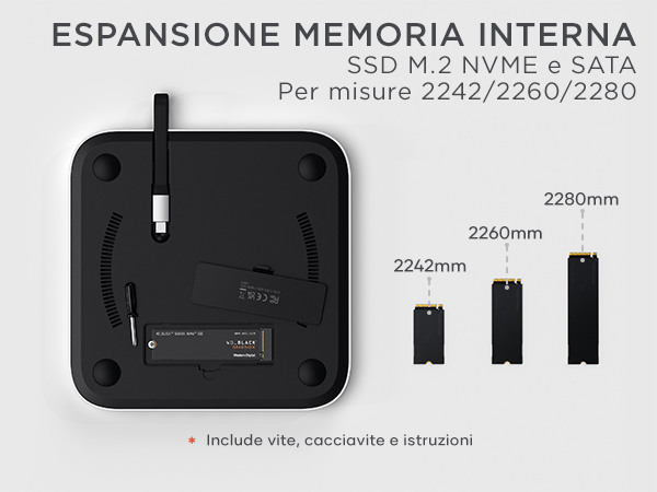 Mini Usb Hub Mac C Con Custodia SSD M.2 Per /M4 Pro Supporto Docking Station Tipo C Custodia SSD USB3.2 Gen2 SD4.0 TF4.0 - AliExpress Mac Mini M4 Dimensioni: 138,5 x 127 x 36 mm. Peso: 310 g. Apple promuove i Mac per gli studenti con la serie Mac to School 12 Mag 2025 Due motivi per cui il nuovo MacBook Air M4 può convincere gli utenti MacBook Pro a cambiare Che si tratti di gestire file di grandi dimensioni, modificare video ad alta risoluzione o backup ad alta velocità, questo hub garantisce un'esperienza senza ritardi e ad alte prestazioni per professionisti e creatori. 2. Espansione dello storage senza sforzo: fino a 8 TB: migliora lo storage Mac Mini M4 senza sforzo con l'unità SSD M. Questo hub USB 4 per Mac Mini trasforma il tuo Mac Mini in una workstation più versatile, mantenendo tutti i tuoi dispositivi essenziali connessi, mantenendo una configurazione pulita e organizzata. 6. Contenuto della confezione: include hub Mac mini USB 4, guida rapida per l'utente, viti e cacciavite per l'installazione SSD, cuscinetti termici in silicone per SSD, cavo USB-C a USB-C per il collegamento a Mac mini (compatibile con Thunderbolt 4). Nota: questo articolo non include SSD NVMe. Inoltre, il design rialzato garantisce un facile accesso al pulsante di accensione, eliminando il fastidio di penetrare sotto il Mac Mini. 5. Connettività perfetta - Estensione USB e audio: estende la connettività del tuo Mac Mini con 3 porte USB 2.0, perfetto per tastiere, mouse e periferiche, oltre a un jack audio da 3,5 mm per cuffie o altoparlanti. 2 NVMe PCIe da 40 Gb/s, compatibile con SSD 2230/2242/2260/2280 e capacità fino a 8 TB.