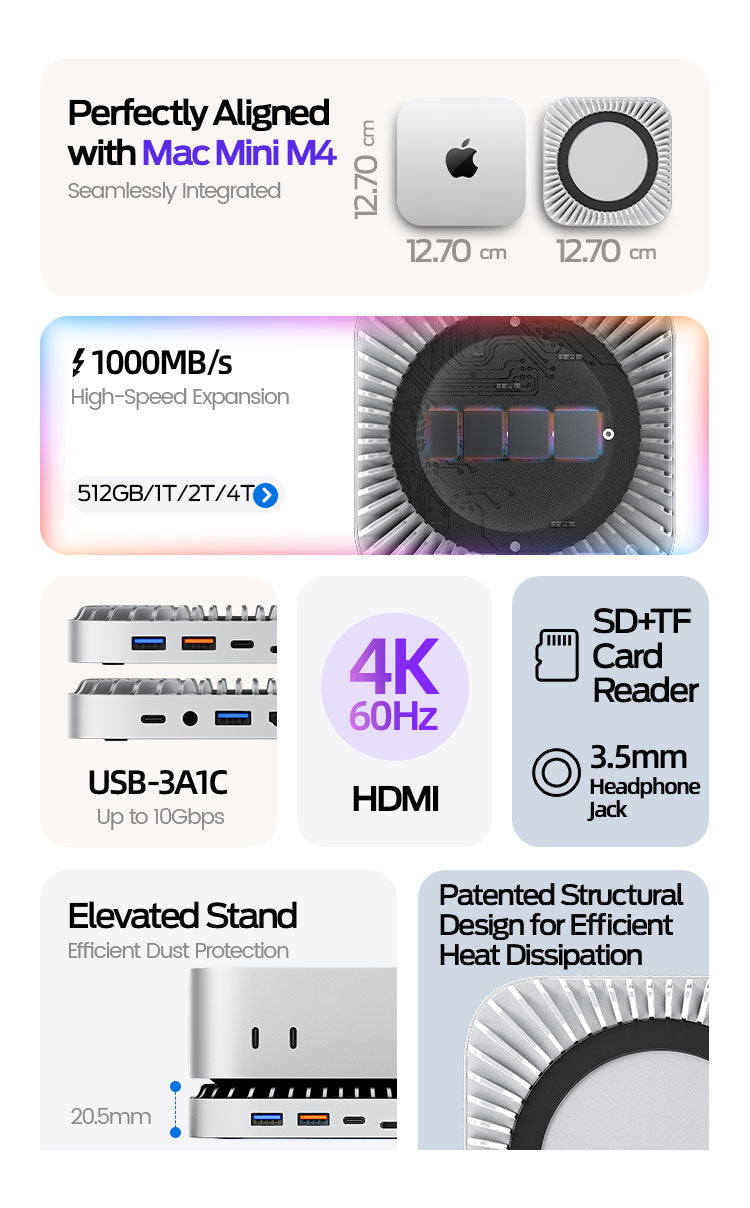Hub Mac Mini USB C Con Custodia SSD M.2 Per Mac Mini M4/M4 Pro Supporto Docking Station Tipo C Custodia SSD USB3.2 Gen2 SD4.0 TF4.0 - AliExpress