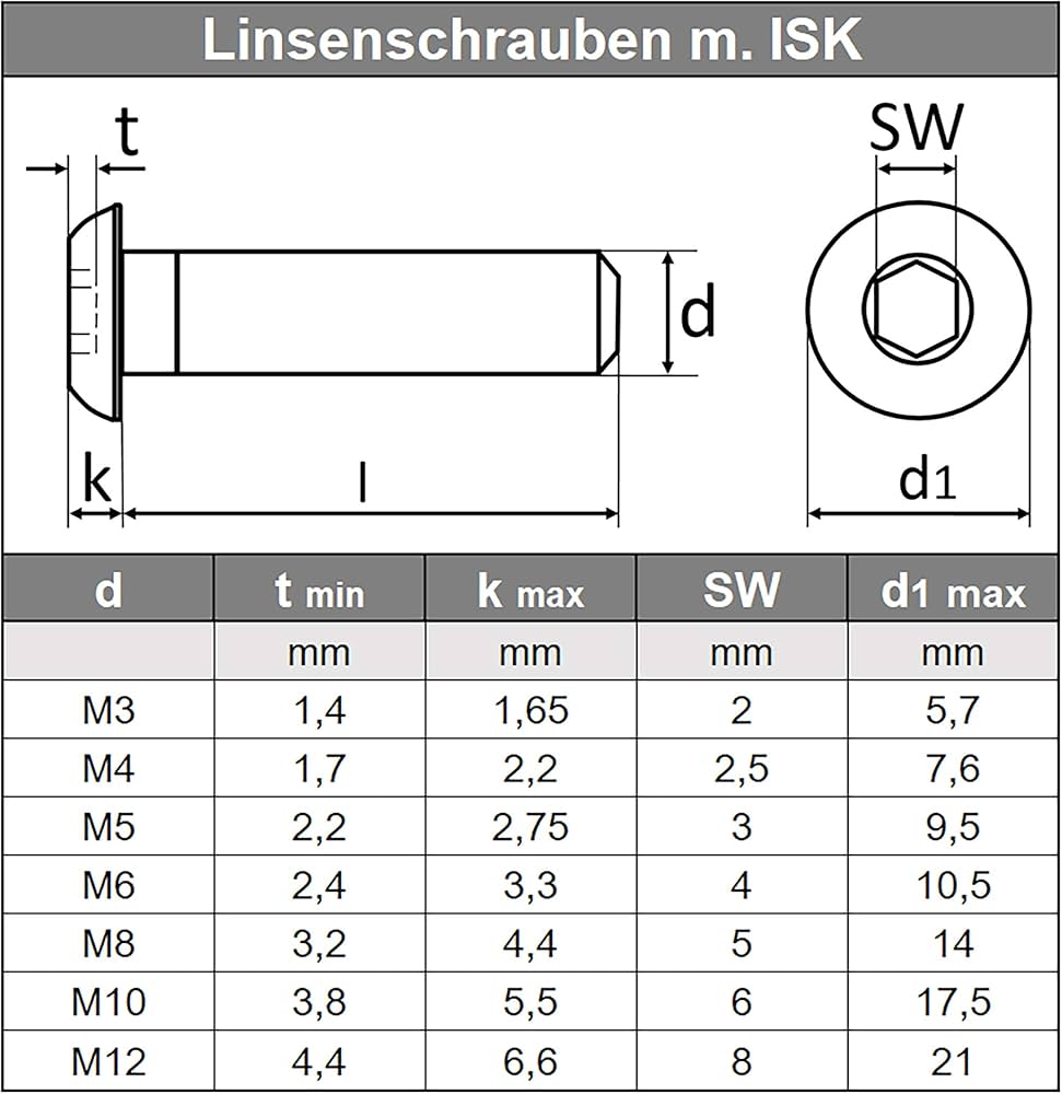 Viti A Testa Bombata M8 X 70 ISO 7380 Con Esagono Incassato (ISK