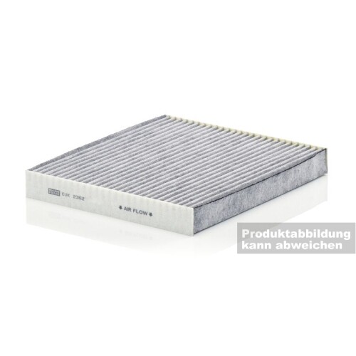 I filtri abitacolo fanno sì che conducente e passeggeri del veicolo debbano inalare il meno possibile di quest'aria inquinata. I prodotti MANN-FILTER soddisfano tutti i requisiti del regolamento europeo REACH per garantire la tutela della salute e dell'ambiente nei processi di sviluppo, produzione, utilizzo e smaltimento MANN-FILTER originali con qualità OE Filtro con qualità di primo equipaggiamento al 100% Qualità di primo equipaggiamento significa che i nostri prodotti sono conformi ai requisiti tecnici e qualitativi e, quindi, alle elevate esigenze delle case automobilistiche. MANN-FILTER Filtro aria cabina CUK 2362 / Dimensioni (mm): A = 251; B = 221; H = 30 / Filtro Alta Qualità di Primo Equipaggiamento Buy MANN-FILTER CUK 2362 Filter , cabin air Genuine parts for cars and trucks group is a worldwide company Per proteggersi da questi pericoli è necessario sostituire regolarmente il filtro abitacolo (anche chiamato filtro antipolline). I filtri abitacolo di alta qualità MANN-FILTER con carboni attivi offrono una protezione quasi al 100% contro particelle come polline, fuliggine diesel e abrasione dei pneumatici / Proteggono anche da gas nocivi e odori sgradevoli Filtro Carbone Attivo Cappa MANN-FILTER CUK 2442 Filtro Aria Cabina - AUTOVETTURE + VEICOLI COMMERIALI Filtro Antipolline Filtri combinati con carboni attivi Perché i filtri antipolline sono importanti? L'aria nell'abitacolo che scorre attraverso il climatizzatore durante la marcia è circa 5 volte più inquinata di gas di scarico, sostanze nocive e allergeni rispetto all'aria all'esterno del veicolo. L'alta efficacia del carbone attivo protegge contro gas nocivi come ozono, ossido di azoto o anidride solforosa ed elimina efficacemente odori sgradevoli durante l'intero intervallo di manutenzione Un altro strato ai carboni attivi premium protegge gli occupanti da gas nocivi come ozono, biossido di azoto o ossidi di azoto e odori sgradevoli. Che si tratti della prima dotazione o della confezione giallo-verde: tutto il mondo si affida ai prodotti MANN-FILTER originali in qualità di primo equipaggiamento al 100%. Il filtro perfetto per asmatici, guidatori abituali o chi soffre di rinite allergica. A polline, fuliggine, attrito degli pneumatici e polveri sottili viene così impedito di penetrare nella vettura attraverso l'impianto di aerazione. Con l'aumento della sporcizia, la sua efficacia diminuisce e non può più adempiere alla propria funzione filtrante (vedere l'immagine!).