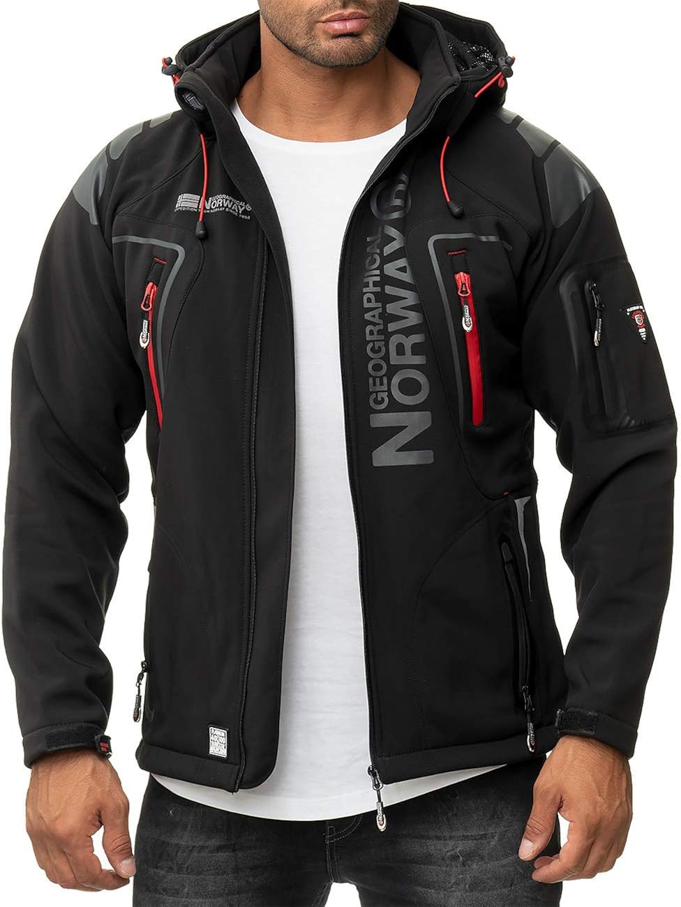 Geographical Norway TECHNO MEN - Giacca Softshell Zip Impermeabile Da Uomo - Cappuccio Traspirante - Giacca Tattico Antivento Calda Invernale - Ideale Per Le Attività All'aperto (NERO L