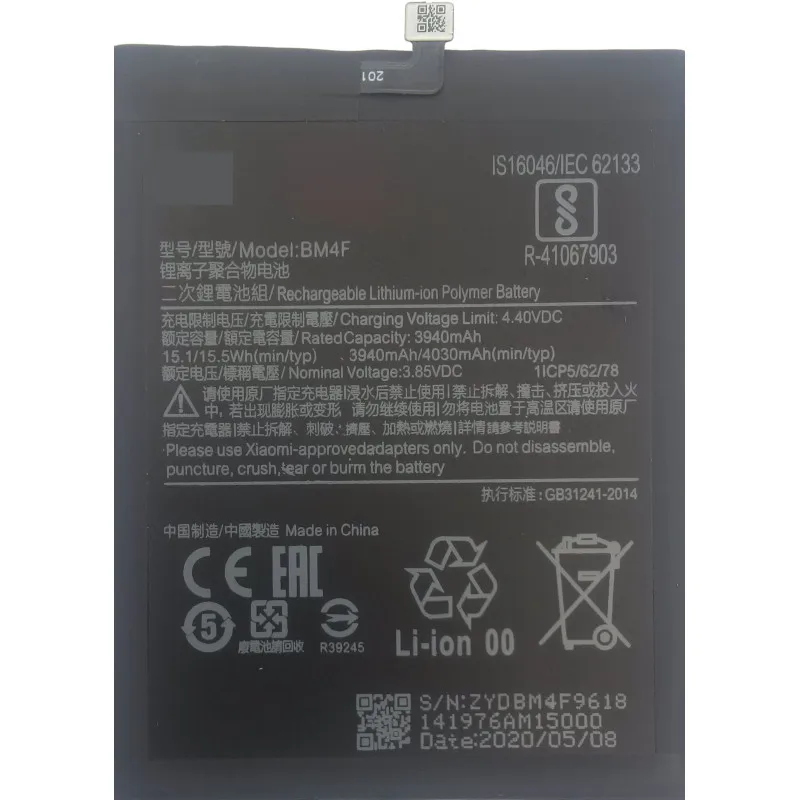 Batteria Litio XIAOMI BATTERIA MI A3 / MI 9 LITE BM4F M1904F3BG M1906F9S ORIGINALE SERVICE PACK Xiaomi Mi ✅ 4030mAh ✅ Chimica batteria: Li-Ion ✅ Kit attrezzi smontaggio incluso Batteria per Xiaomi Mi 9 Lite, Xiaomi Mi A3, non necessita di stampaggio, la tecnologia agli ioni di litio consente di ricaricare la batteria in modo sicuro senza comprometterne la durata. È una cella di fascia alta. Pronto all'uso subito dopo l'acquisto ❌ NON Compatibile con: ▪️MI 9