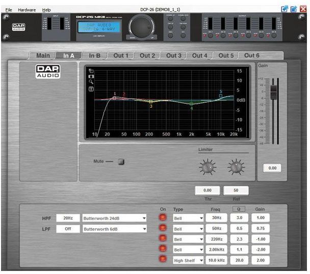 Philips EQ ingresso livello DSP5: selezione EQ: allpass, bell, highshelf, lowshelf, non Cheq – Gamma di frequenza: da 20 a 20.000 Hz in incrementi di 1 Hz per tutti gli Eqsdelay: ritardo di uscita: canale indipendente da 0 a 8 ms. Dispone inoltre di tutte le funzioni necessarie come driver di fase, limitatore e ritardi con valori di ingresso e uscita puliti Display LCD Hai tutte le informazioni necessarie a colpo d'occhio Il 26/MKII è adatto per sistemi PA, line array e sistemi audio funziona come per le reti audio. The DAP DCP-26 MKII is a 6-channel digital crossover, suitable for your 6-part sub/top speaker combination. DAP DCP-26 MKII | JavaScript seems to be disabled in your browser Davidoff Dcp 26 Mkii DAP DCP-26 MKII Crossover Numérique, Processeurs Sono, Top Prix | Fnac Scheda Audio Behringer 5 EQ uscita banda pezzo: Selezione EQ: Uguale al tipo di ingresso: Low Shelf, 6 Low Shelf, 12 High Shelf 6 e High Shelf 12CROSSOVER: tipi: Link Funny Riley, Bessel Undbutterworthslopes: 6, 12, 18, 24dB/Ottava di interferenza gamma di frequenza: da 20 a 20.000 in passi da 1 Hz limitatore di ottava: valori di soglia: da -20 dB a + 20 dBu in passi da 0,5 dB tempo di attacco: limitatore senza tempo di attacco tempo di rilascio ritardato: 1 = più veloce, 100 = ~ infinito, in 1 incrementi. Werdendisplay: 2x 16 caratteri a matrice di punti latenza: 1,27minterfaccia USB: retro alimentazione: 6 V dcstromverbrauch: 4 Watt, interruttore di alimentazione: retro dimensioni: 483 mm x 155 mm x 44 mmzubehör: alimentazione, cavo USB, DSP segnale digitale software di elaborazione. Dati tecnici: DSP: frequenza di campionamento: 48 KHz, 64 bit NXP . Varie: Posizioni di memoria: 50 Preimpostazioni utente Smute: Tutti i canali di uscita si könnenunabhängig l'uno con l'altro silenziosi. L'unità principale dispone di 5 equalizzatori parametrici PEQ sugli ingressi e sulle uscite e vari filtri, in modo da poter gestire tutti i tipi o sistemi di altoparlanti.